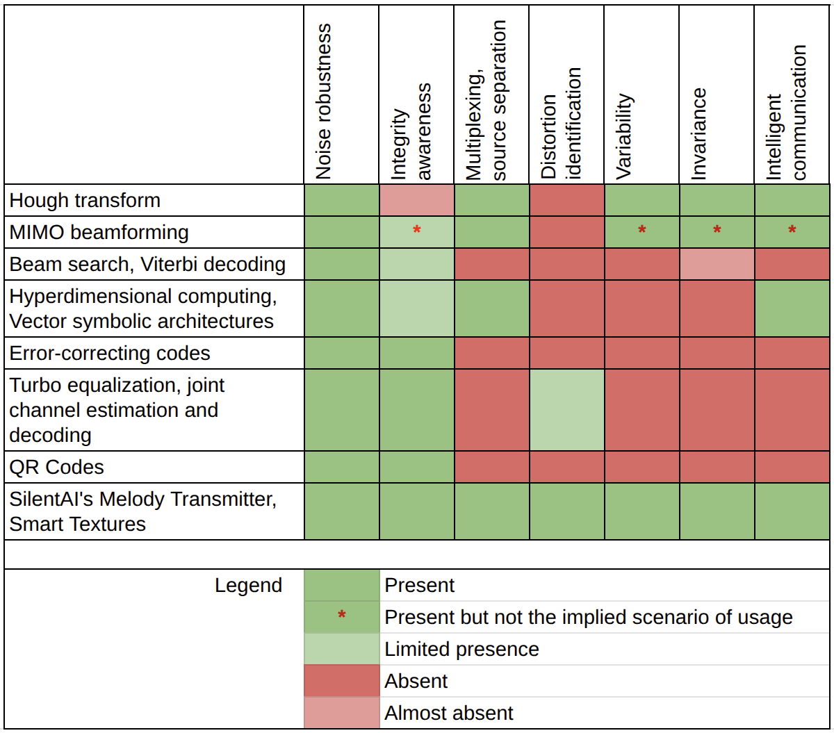 These are based on our proprietary algorithms. They were built keeping Integrity in mind and therefore satisfy all the desired properties of structural communication. More details about Melody Transmitter can be found here: https://www.silenti.ai/blog-demos/melodies. More details about Smart Textures can be found here: https://www.silenti.ai/blog-demos/textures.